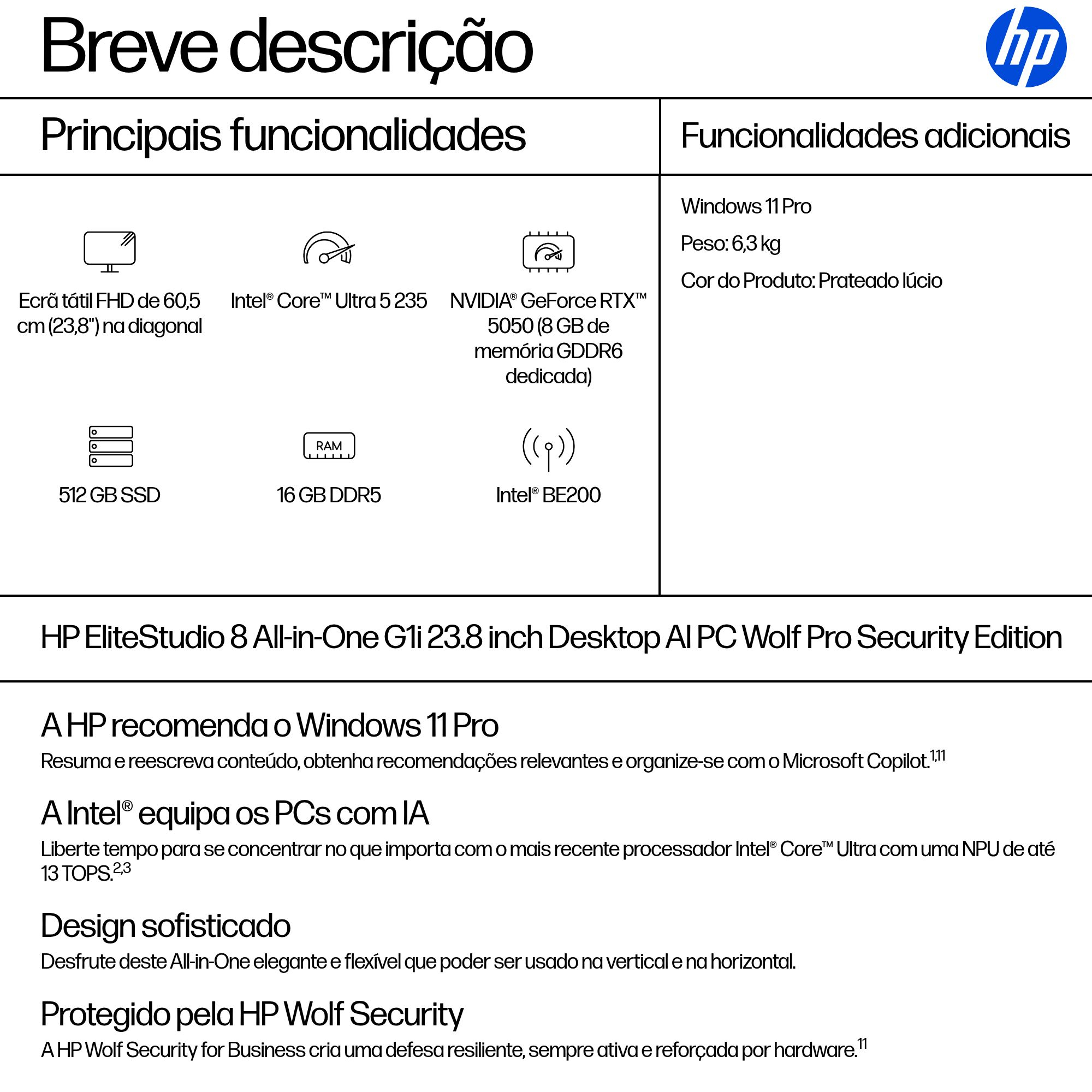 HP EliteStudio 8 AiO G1i 24inch Touch Intel Core Ultra 5 235 16GB 512GB SSD W11P 3YR